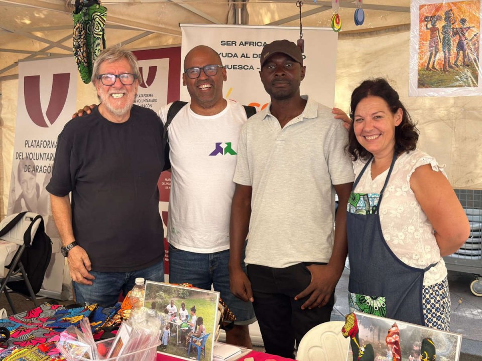 Rafa Díaz con Paz y Rafael de la Asociación Ser África en la Feria del Voluntariado en Huesca