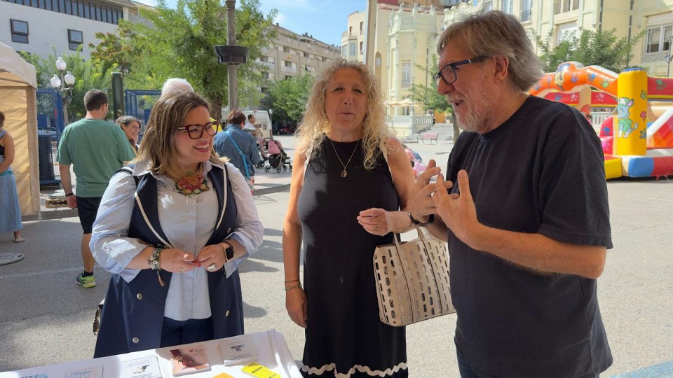 Rafa Díaz con las Concejalas Susana Olivan y Concejala del Ayuntamiento de Huesca. Feria del Voluntariado en Huesca
